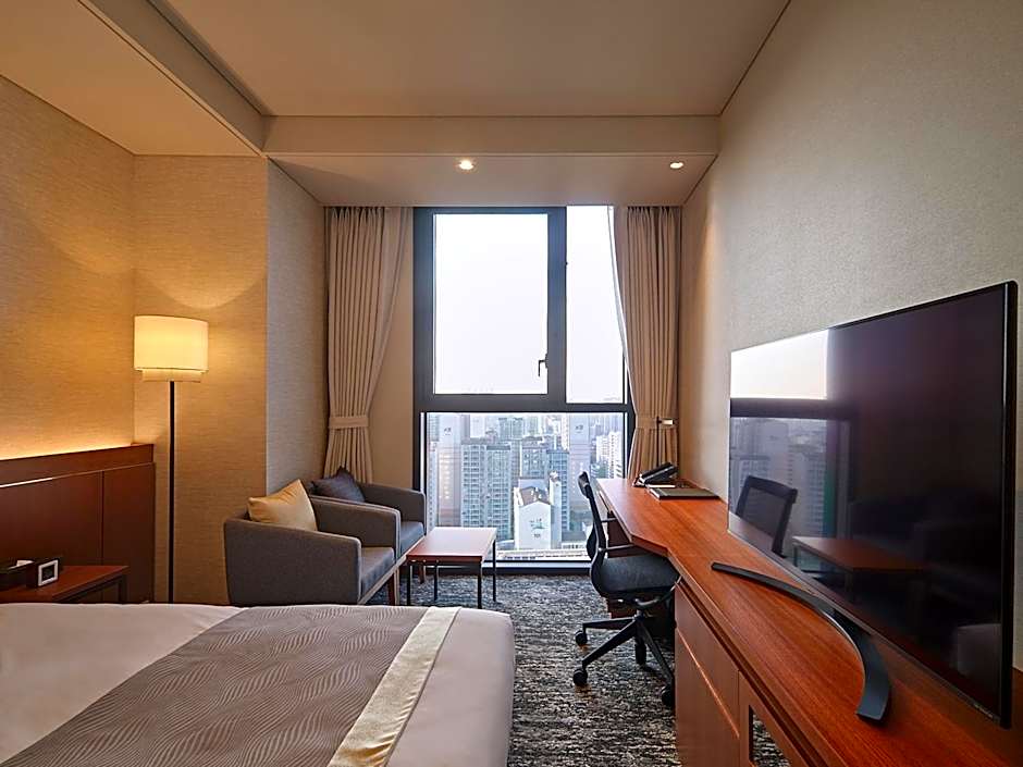 This spacious suite includes 1 living room, 1 separate bedroom and 1 bathroom with a walk-in shower and bathrobes. The air-conditioned suite offers a flat-screen TV with satellite channels, executive lounge access, a wardrobe, a safe deposit box as well as city views. The unit has 2 beds.